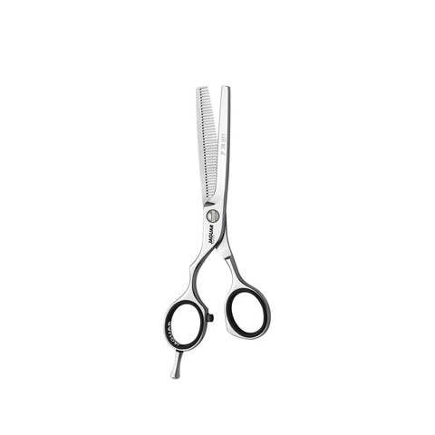 Jaguar JP 38 Left professzionális balkezes ritkító olló 49526 - 5,25 - Kényelmes ergonómikus kialakítású balkezes ritkító olló - Offset design a könnyű, fáradságmentes és pontos vágásért - 38 V alakú fog a könnyű, pontos és egyenletes vágás érdekében - M