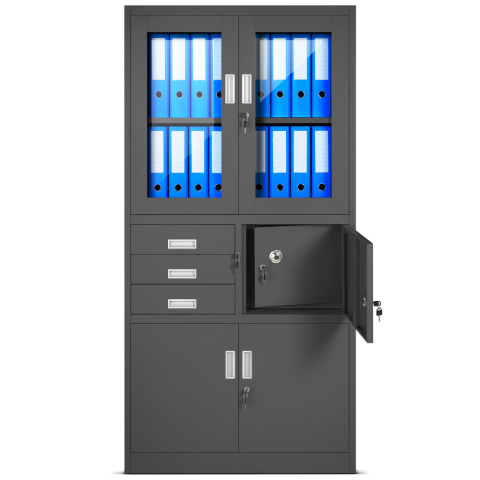 5 kép Jan Nowak® | FILIP Fém iratszekrény vitrinnel és széffel / FEKETE