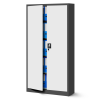 A JAN modell fehér ajtós, antracit szekrénytestű kivitelben egy modern és letisztult megjelenésű, kulccsal zárható fém iratszekrény, amely ideális megoldás a dokumentumok biztonságos és rendszerezett tárolására. Formatervezése révén kiválóan illeszkedik i