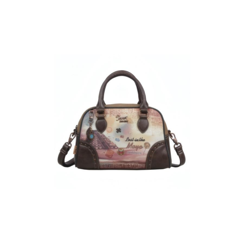 A Janet Denese J-047B-MAYA JOURNEY válltáska elegáns, mégis játékosan művészi megjelenést kínál, amelyet a maja kultúra ikonikus motívumai és a harmonikus pasztell–földszín kombináció tesz igazán különlegessé.