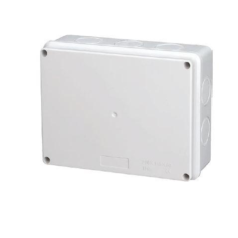 Anyaga halogénmentes termoplaszt. Méret:317x247x135 mm. IP65 Oldala perforált, mely könnyen kitörhető a bevezetésekhez.