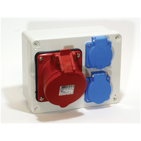 - Szerelt ipari doboz - Anyaga: ABS - 2x(2P+F) + 1x(5P16A) - Méret: 180 x 145 x 85 mm - IP védelem: IP44 - Szín: szürke