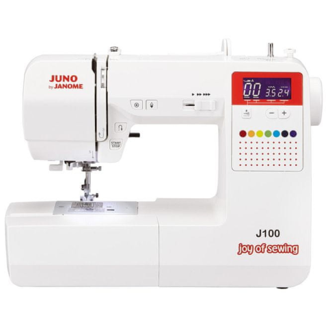 Varrógép - 100 varróprogram, 60-féle öltéstípus, dekorációs öltés, 5 mm-es öltéshossz, 7 mm-es öltésszélesség, automatikus tűbefűzés, overlock öltés, auto tűbefűző, szabad kar, orsótekercselés, dupla tűs varrás, öltéshossz beállítás, öltésszélesség beállítás és világítás A kitűnő Janome Juno J100 elektromos varrógép kijelzővel rendelkezik és számos különböző funkciót kínál. Összesen 60 öltéstípust kínál. A nagyszerű varrógép pro