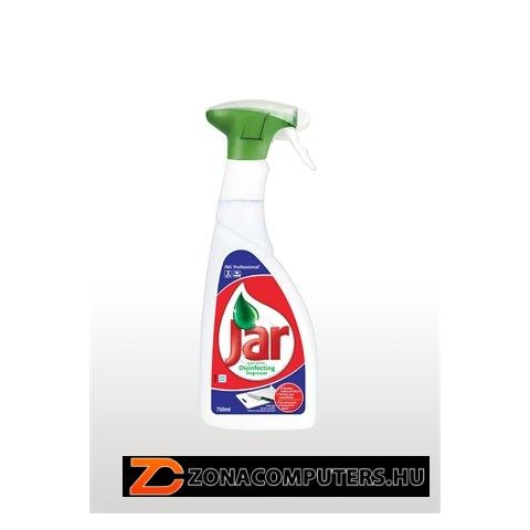 Konyhai zsíroldó, 2in1 fertőtlenítő spray, 750 ml, JAR (KHT345) A Jar Professional ultrahatékony zsíroldó spray kifejezetten professzionális konyhák számára készült. Biztonságosan alkalmazható élelmiszerrel érintkező felületeken és a legtöbb mosható a