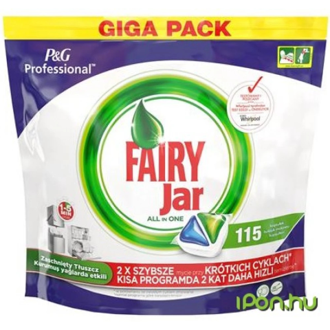 A Jar All in One egyesével csomagolt mosogatókapszula automata mosogató- és pohármosogató gépekhez. Mosogatógép tabletta ás öblítő is egyben! -hatékony tisztítás még a makacs, rászáradt foltok esetén is (például rúzs-, kávé- vagy teafoltok) -öblítéskönnyítővel a makulátlan ragyogásért és a gyors eredményért -higiénikus tisztítás -gyors oldódás még a rövid programos (1-5 perc) professionális és ipari mosogatógépekben is -nincs szükség előöblít