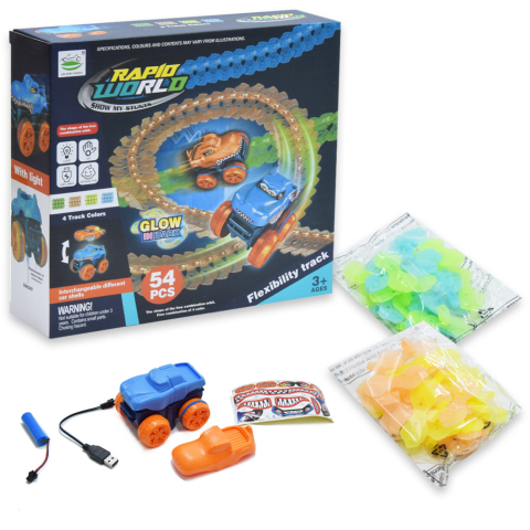Játékos Világító autópálya gyerekeknek, 54 részes szett autópálya és játékautó 1 kép