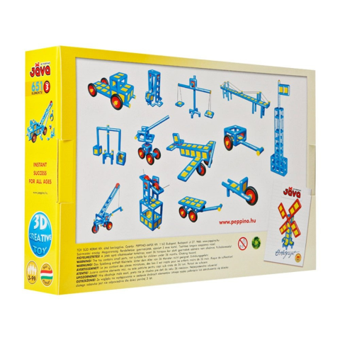 Készíts repülőket, autókat a 651 darabos Java építőjátékkal! A Jáva 3 építőjáték műanyagból készült építőelemeket, illesztékeket, kerekeket és rengeteg kiegészítőt foglal magában, amikből érdekes építményeket, járműveket tudsz összeszerelni. A Java készletek egymással kombinálhatók, együtt használhatók, és miközben építkezel, aktívan fejlődni fog a finommotoros mozgásod, a műszaki érzéked, a térlátásod is. A Jáva 3 építőjáték összes