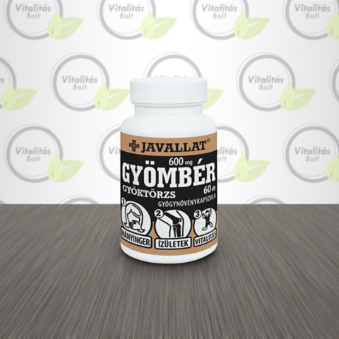 60 db szuperfinom instant gyógynövényport tartalmazó étrend-kiegészítő gyógynövénykapszula, bevizsgált, kiváló minőségű gyógynövényből. A gyömbér egészségügyi hatásai: 1. Támogatja a légutak és a hörgők egészségét, a szabad légzést. 2. Hozzájárul az utaz