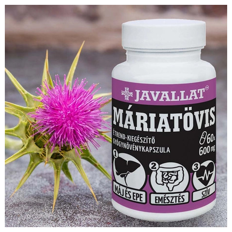 JAVALLAT® Máriatövis gyógynövény kapszula - 60 db A máriatövis hivatalos jegyzékben szereplő egészségtámogató hatásai: 1. Segíti a máj és az epehólyag egészséges működését és támogatja a máj méregtelenítő folyamatait. 2. Támogatja az egészséges emésztés