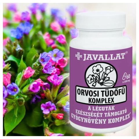 JAVALLAT® - Orvosi tüdőfű komplex 60 db A légutak egészségét támogató gyógynövény komplex JAVALLAT® - Orvosi tüdőfű komplex 60 db 60 db SonicFine® instant gyógynövényport tartalmazó kapszula A komplexben (kapszulánként 500 mg) egymás hatását támogató