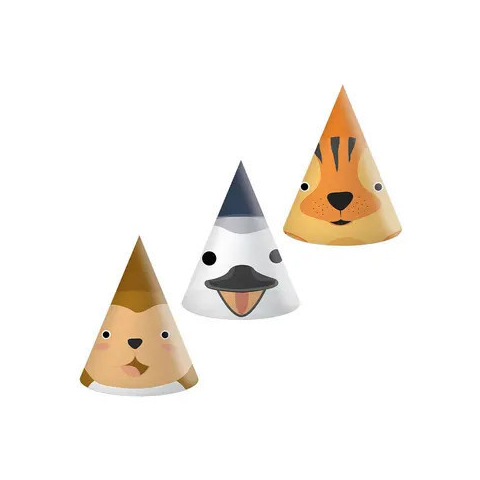 Animals, Állatos parti kalap, csákó 6 db-os FSC Anyaga: kartonpapír Méret: 16x12 cm 6 db/csomag FSC (Forest Stewardship Council)