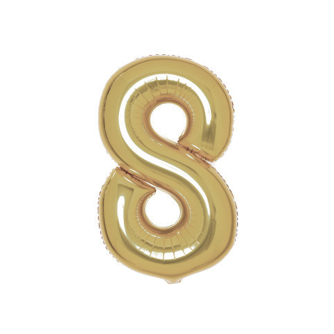 Arany 8-as szám fólia lufi Fólia léggömb, mely héliummal vagy levegővel tölthető. A lufi önzárószeleppel van ellátva, amely megakadályozza a gáz elszökését. Méret: 86x54 cm Anyaga: fólia A lufi tartó pálca + csésze külön megvásárolható áruházun