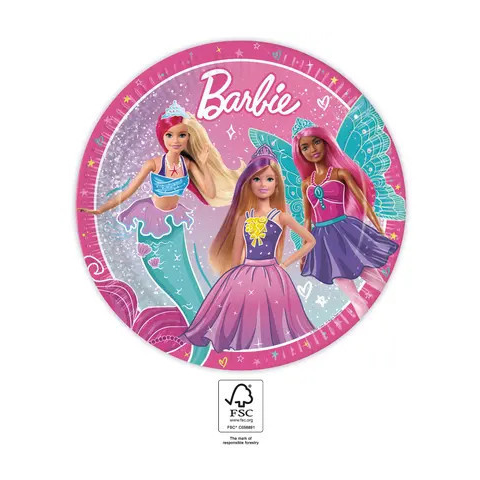 Barbie papírtányér 8 db-os 23 cm FSC Anyaga: papír Méret: 23 cm 8 db tányér/csomag FSC (Forest Stewardship Council)