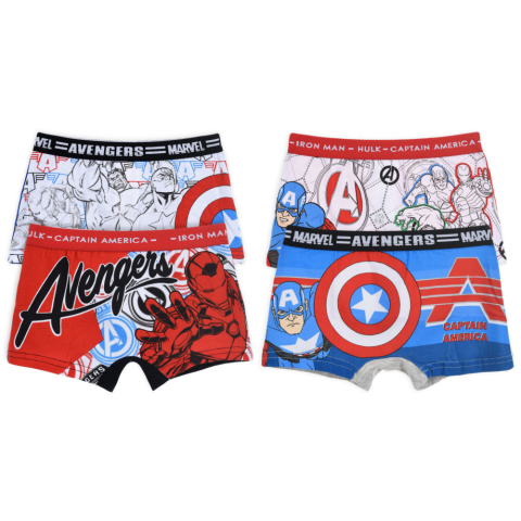 Avengers, Bosszúállók gyerek boxeralsó 2 darab/csomag Méretek: 2/3 - 4/5 - 6/8 év Anyaga: 95% pamut + 5% elasztán Szürke anyaga: 35% poliészter + 60% pamut + 5% elasztán Az ár 2 darabra vonatkozik!