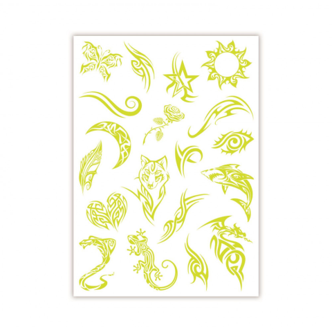 Crazy Chic sötétben világító tetoválás Clementoni Anyaga: papír Méret: 18,5 x 14 cm 17 db tetoválás 6 éves kortól ajánlott!