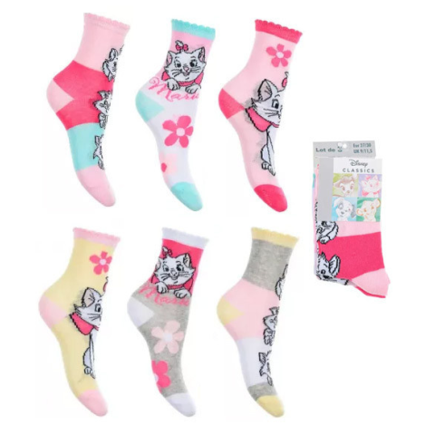 Disney Marie Gyerek zokni 23-34Az ár 3 pár zoknira vonatkozik!Anyaga: 70% pamut, 18% poliészter, 10% poliamid , 2% elasztán.6 féle minta!Méretek : 23/2627/3031/346*3 pár/csomag