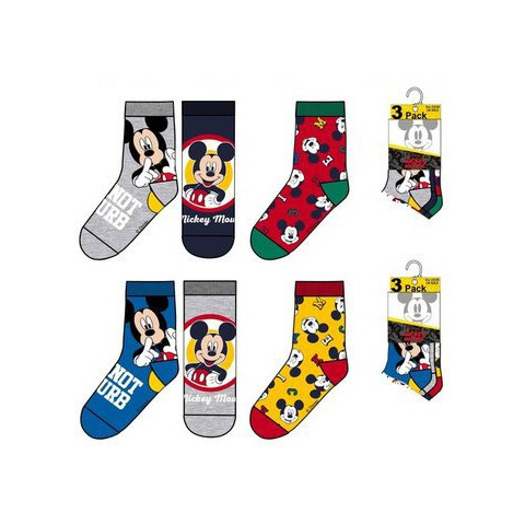Disney Mickey Gyerek zokni 23-34Anyaga: 70% pamut, 18% poliészter, 10% poliamid , 2% elasztán.6 féle minta!Az ár 3 pár zoknira vonatkozik!Méretek : 23/2627/3031/346*3 pár/csomag
