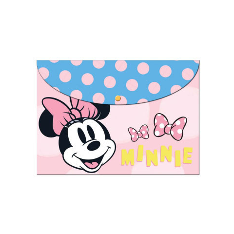 Disney Minnie A/4 Irattartó tasakMéret: A/4Anyaga: rugalmas, víztiszta, polipropilén alapanyagPatent segítségével könnyen záródik.