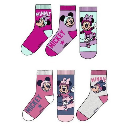 Disney Minnie Skate Gyerek zokni Anyaga: 62% pamut, 23% poliészter, 13% poliamid, 2% elasztán.6 féle minta!Az ár 3 pár zoknira vonatkozik!Méretek : 23/2627/3031/346x3 pár/csomag
