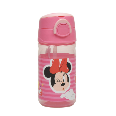 Disney Minnie műanyag szívószálas kulacs akasztóval 350 ml Pattintható kupak, amely védi a szívószálat. Anyaga: műanyag BPA mentes Űrtartalom: 350 ml