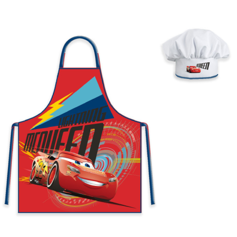 Disney Cars, Disney Verdák Gyerek kötény szett Anyaga: 100% poliészter Szett tartalma: - 1 db kötény - 1 db kuktasapka Ajánlott 3-8 éves korig. Csomagolt termék, ajándéknak is kitűnő.