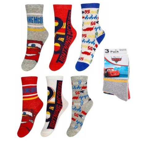 Disney Cars, Disney Verdák Gyerek zokniAz ár 3 pár zoknira vonatkozik!Anyaga: 70% pamut, 18% poliészter, 10% poliamid, 2% elasztán6 féle minta!Méretek : 23/2627/3031/346*3 pár/csomag