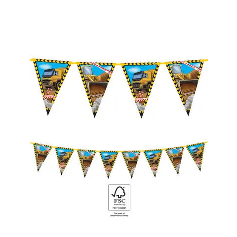 Construction, Építkezés zászlófüzér 9 zászló Mérete: 2,3 m FSC (Forest Stewardship Council)