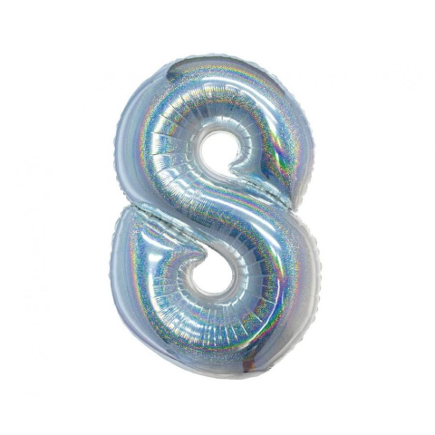 1 kép Javoli Ezüst Holographic 8-as szám fólia lufi 76 cm
