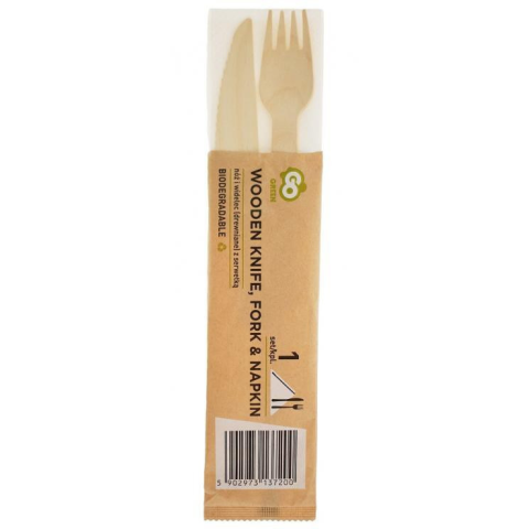 Fa villa és kés szalvétával Tartalma: villa, szalvéta (ECO) Mérete:16 cm.