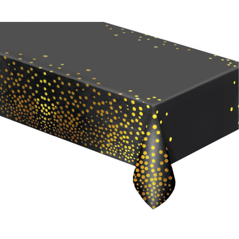 Black Gold Dots, Fekete fólia asztalterítő Mérete: 137x183 cm Anyaga: fólia