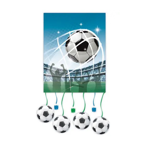 Football, Focis pinata játék A Pinata játékot apró játékokkal, cukorkával, csokoládéval, stb. lehet megtölteni, mielőtt a vendégek megérkeznek. Fel kell lógatni olyan helyre, hogy alatta elférjenek a játékosok és a gyerekek elérjék a lelógó szalago