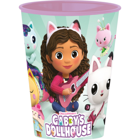 Gabby's Dollhouse, Gabi babaháza Guitar mintás pohár Anyaga: műanyag -BPA Mentes -Származási ország: Spanyolország -600 watton mikrózható max. 2 percig Űrtartalom: 260 ml