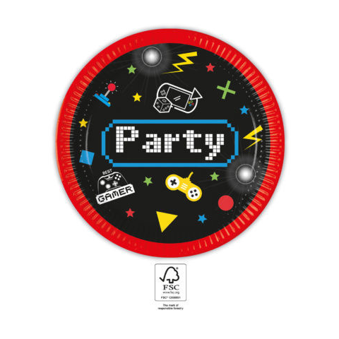 Gaming Party papírtányér 8 db-os 23 cm 8 db tányér/csomag Anyaga: papír FSC (Forest Stewardship Council)