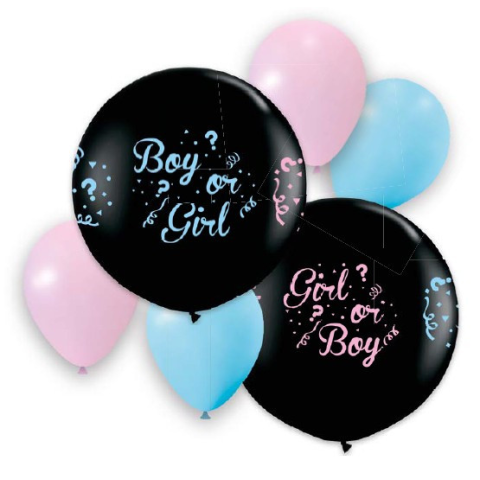 Gender reveal, Fiú vagy Lány léggömb, lufi szett Anyaga: latex/gumi Mérete: -1 db 80 cm -4 db 30 cm A lufi tartó pálca + csésze külön megvásárolható áruházunkban.