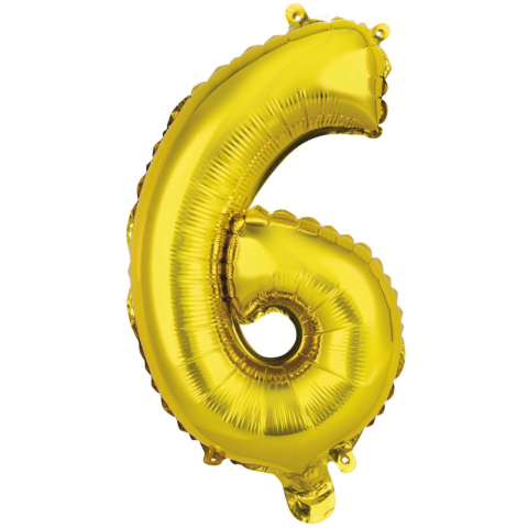 Gold 6-os szám fólia lufi, 45 cm Fólia léggömb, mely héliummal vagy levegővel tölthető. A lufi önzárószeleppel van ellátva, amely megakadályozza a gáz elszökését. Méret: 45 cm Anyaga: fólia A lufi tartó pálca + csésze külön megvásárolható áruhá