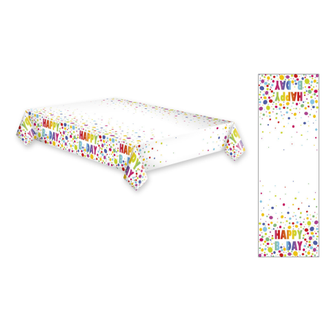Happy Birthday papír asztalterítő Mérete: 120x180 cm Anyaga: papír