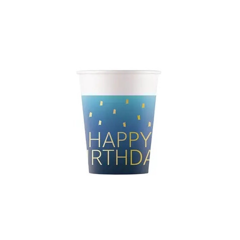 Happy Birthday Golden Blue papír pohár 200 ml8 db pohár/csomagAnyaga: papírFSC (Forest Stewardship Council)