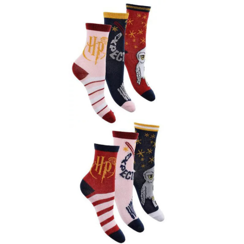 Harry Potter Gyerek zokni 23-34Az ár 3 pár zoknira vonatkozik!Anyaga: 70% pamut + 18% poliészter + 10% poliamid + 2% elasztán.6 féle minta!Méretek: 23/2627/3031/346*3 pár/csomag