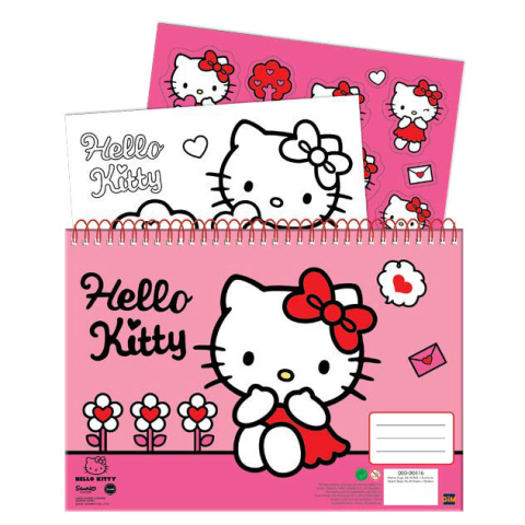 Hello Kitty spirál vázlatfüzet, 40 lapos 1 ív matricával és 3 db színezhető képpel! Méret: A/4 (23x33cm)
