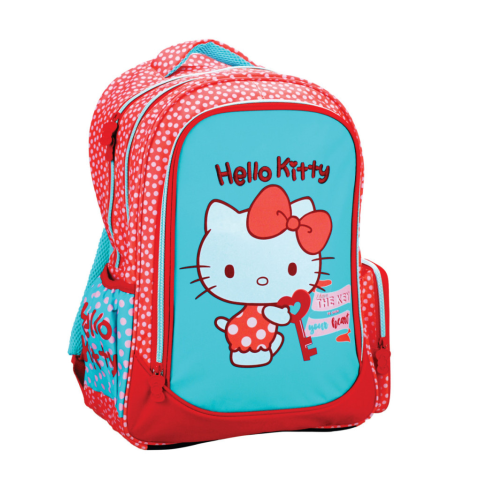Hello Kitty iskolatáska, táska Méret: 46x30x20 cm Négy cipzáras tárolóval rendelkezik. Pántjai állíthatóak. Két oldalsó zseb.