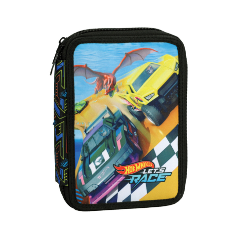Hot Wheels tolltartó töltött 2 emeletes. Tartalma: - 10 db színes ceruza - 10 db színes filctoll - 2 db grafitceruza - 1 db radír - 1 db vonalzó - 1 db hegyező - 1 db jegyzettömb - 1 db órarend