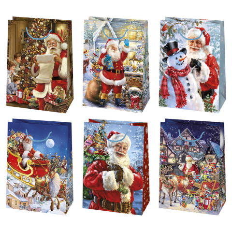 Christmas, Karácsony papír ajándéktasak, ajándékzacskó Anyaga: papír Méret: 23x32x11 cm 6 féle minta vegyen! 10 darab/csomag