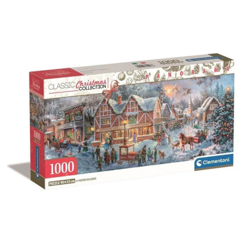 Karácsonyi falu puzzle 1000 db-os panorama Clementoni Mérete: 98x33 cm Doboz mérete: 40 x 21 x 6 cm - kiváló minőség - poszter mellékelve - 10 éves kortól ajánlott