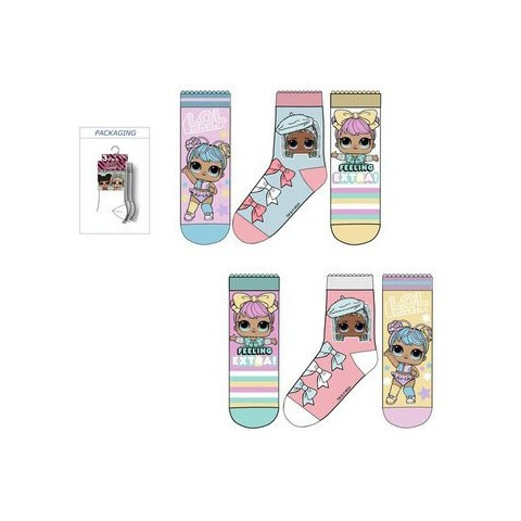 LOL Surprise gyerek zokni Az ár 3 pár zoknira vonatkozik!Anyaga: 20% pamut + 78% poliészter + 2% elasztán6 féle minta!Méretek: 23/2627/3031/346x3 pár/csomag