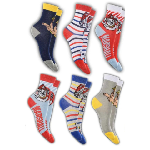 Paw Patrol, Mancs Őrjárat Marshall Gyerek zokni 23-34Anyaga: 40% pamut, 55% poliészter, 3% viszkóz , 2% elasztán.6 féle minta!Az ár 3 pár zoknira vonatkozik!Méretek : 23/2627/3031/346*3 pár/csomag