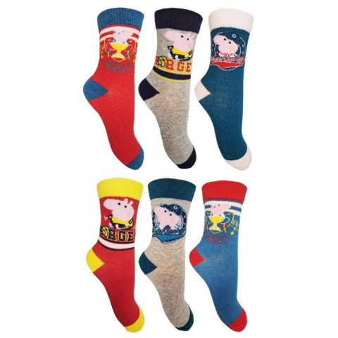 Peppa malac George gyerek zokni 23-34-Gyerekruha, Játékok & Kiegészítők | Sandori.hu – Gyors Szállítás-908-Peppa Pig, Peppa malac Gyerek zokni 23-34Az ár 3 pár zoknira vonatkozik!Anyaga: 70% pamut + 18% poliészter + 10% poliamid + 2% elasztán.6 féle minta!Méretek: 23/2627/3031/346*3 pár/csomag