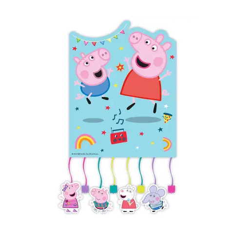Peppa Pig, Peppa malac pinata játék A Pinata játékot apró játékokkal, cukorkával, csokoládéval, stb. lehet megtölteni, mielőtt a vendégek megérkeznek. Fel kell lógatni olyan helyre, hogy alatta elférjenek a játékosok és a gyerekek elérjék a lelógó