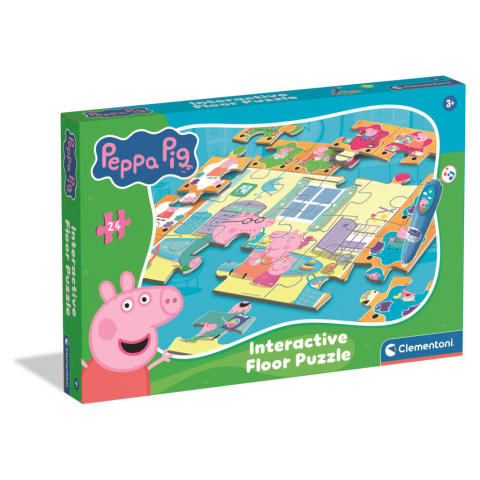 Peppa Pig, Peppa malac interaktív 24 db-os puzzle Clementoni Mérete: 62x42 cm Doboz mérete: 40x27cm Tartalma: 24 db-os kirakó, 1 db elektronikus toll, 2 db matrica, használati útmutató - fejleszti a kézügyességet, a logikát a megfigyelőképességet