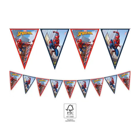 Spiderman, Pókember zászlófüzér 9 zászló Mérete: 2,3 m FSC (Forest Stewardship Council)