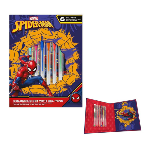 Spiderman, Pókember notesz + zselés toll szett Méret: 18,5x23 cm Tartalma: - 1 db notesz 16x21,5 cm (4 db színezhető képpel) - 6 db zselés toll Csomagolt termék, ajándéknak is kiválóan alkalmas.